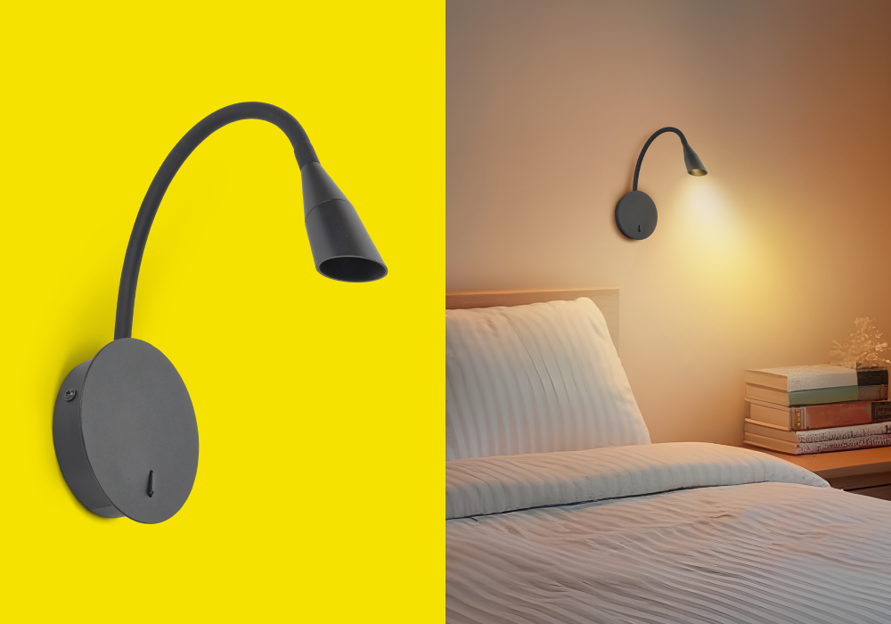IEK flexible LED lighting is used as a bedside lamp.